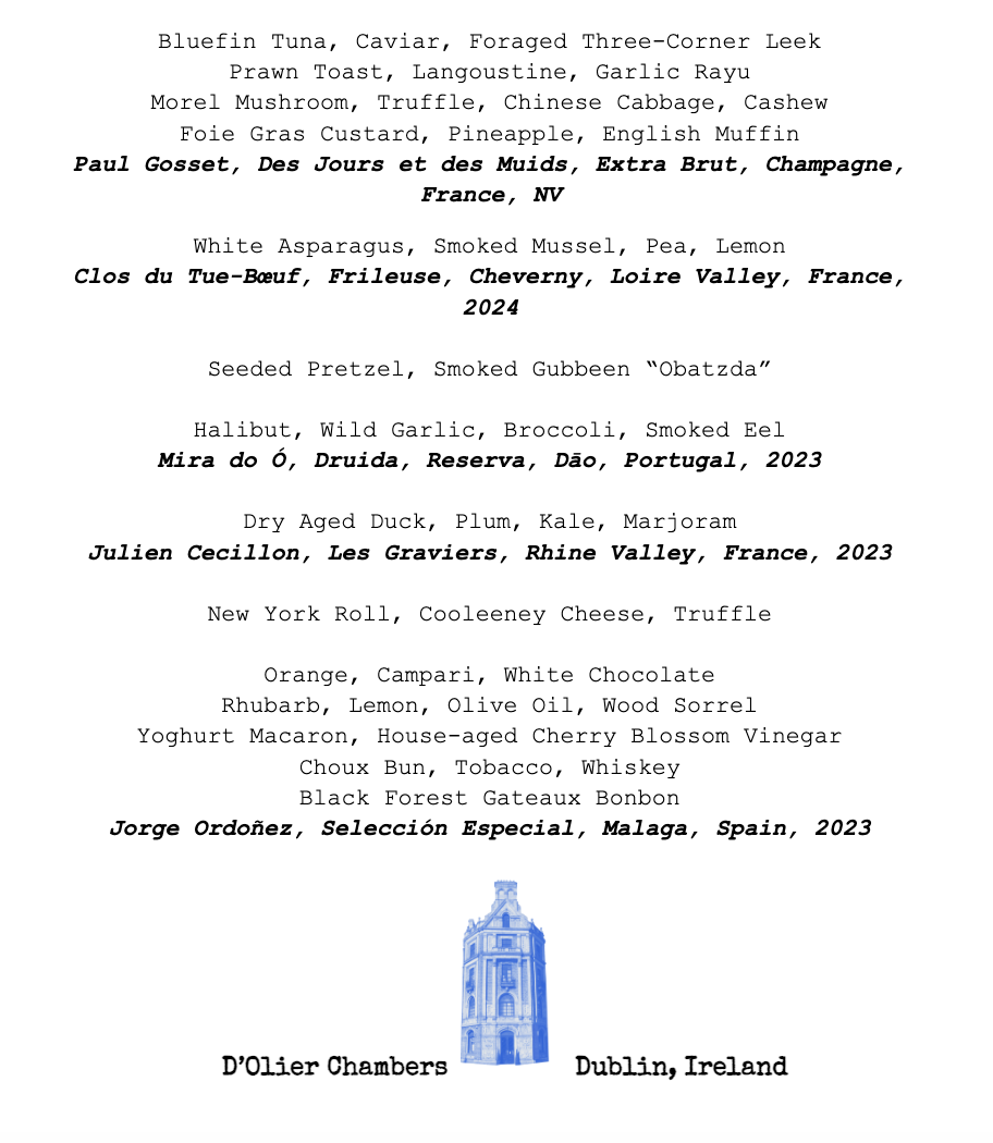 D’Olier Street offers a 13-course tasting menu for both dinner and lunch for €139 per person. The menu changes seasonally, about every eight weeks.